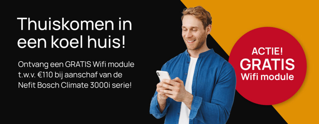 Thuiskomen in een koel huis tijdens de warme zomermaanden? Tot eind juli krijg je bij de aanschaf van de Nefit Bosch Climate 3000i serie een gratis wifi module t.w.w. €110.